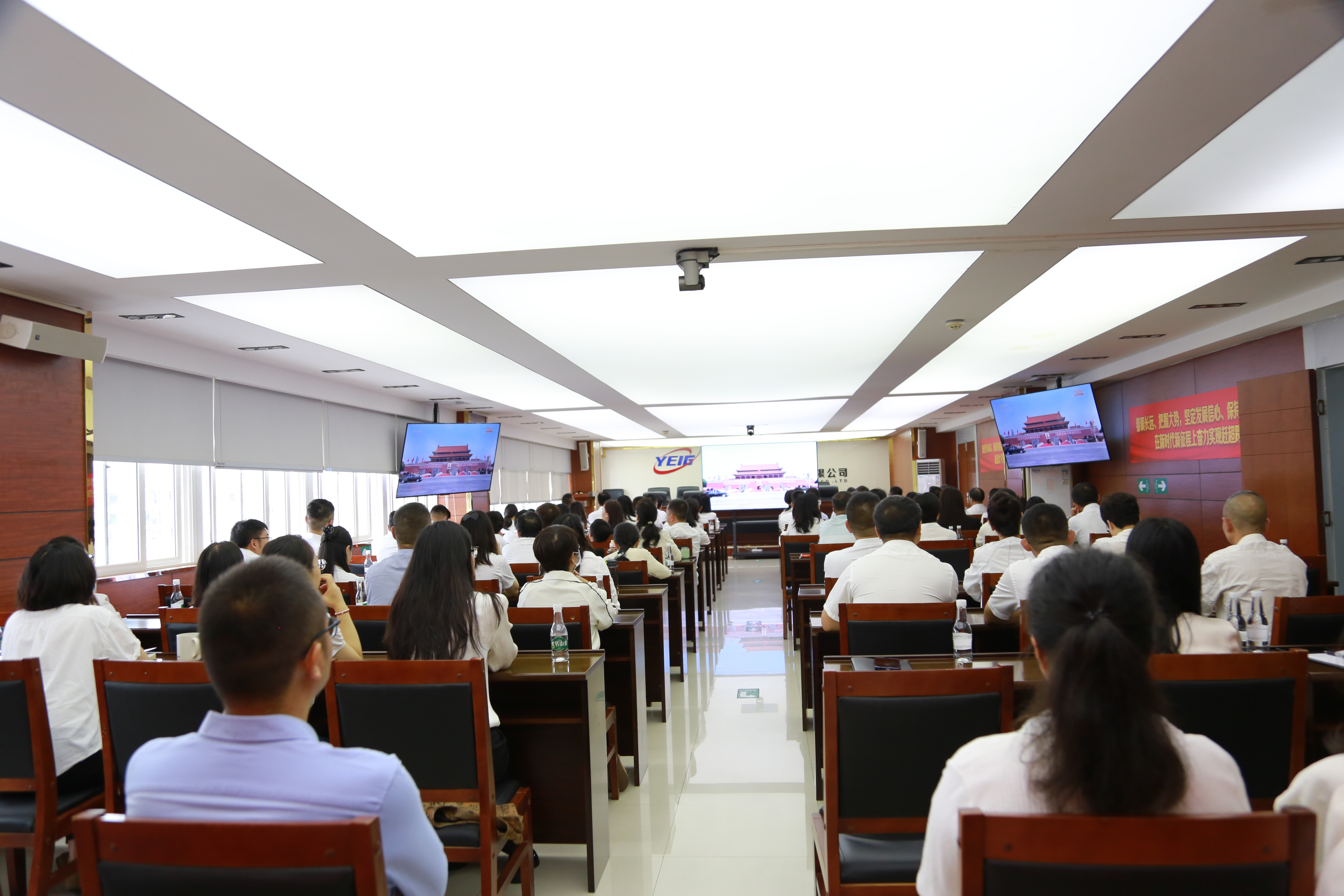 绿能集团本部观看直播大会现场